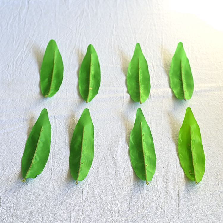写真の工芸品のメーカーの卸売りのシミュレーションの花の原材料の竹の葉のチューリップの葉の絹の花は骨の葉を発射します。
