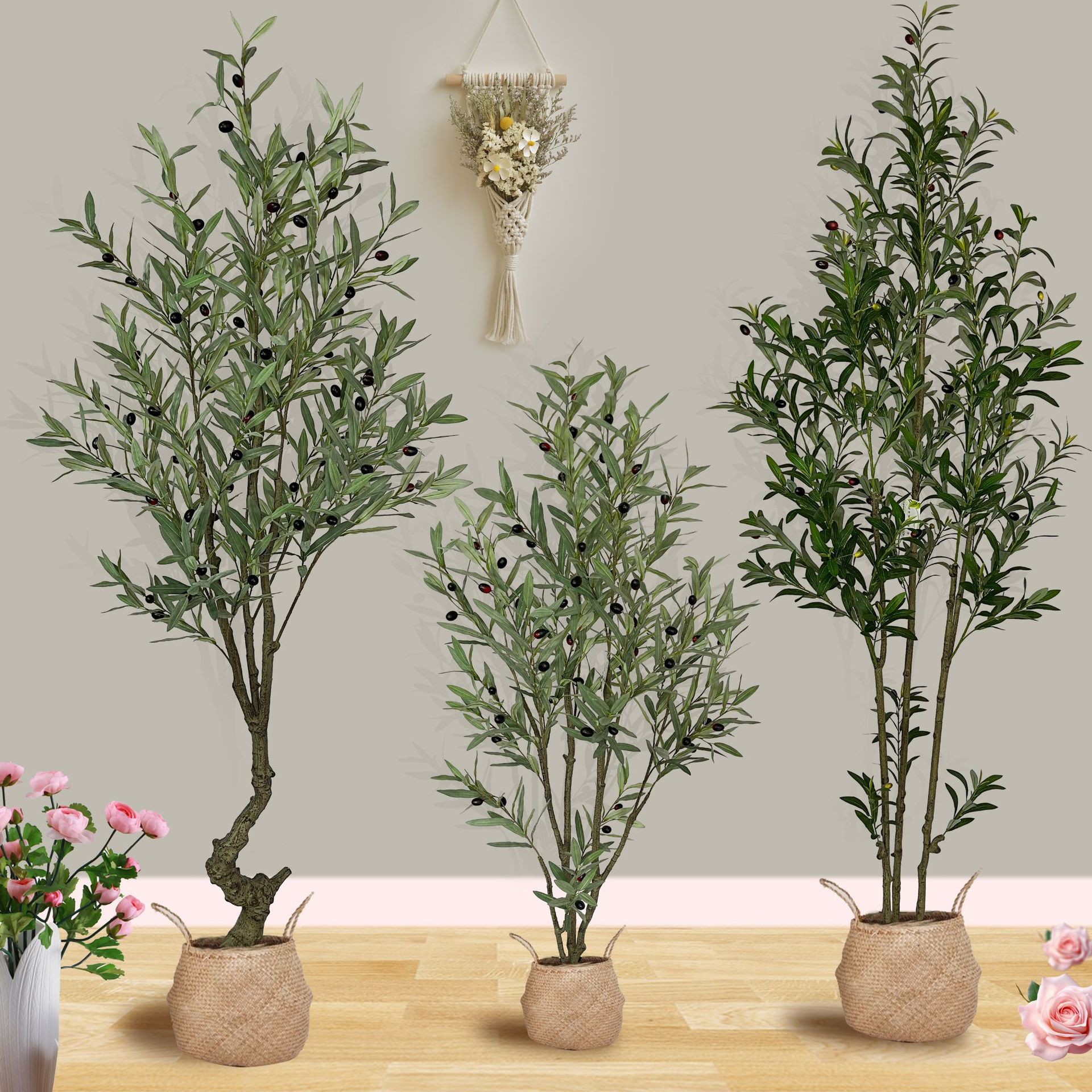 北欧の軽豪華なシミュレーション緑のオリーブの木の鉢植えの置物の大型の着脱の偽の木の装飾のバイオニック植物の造景