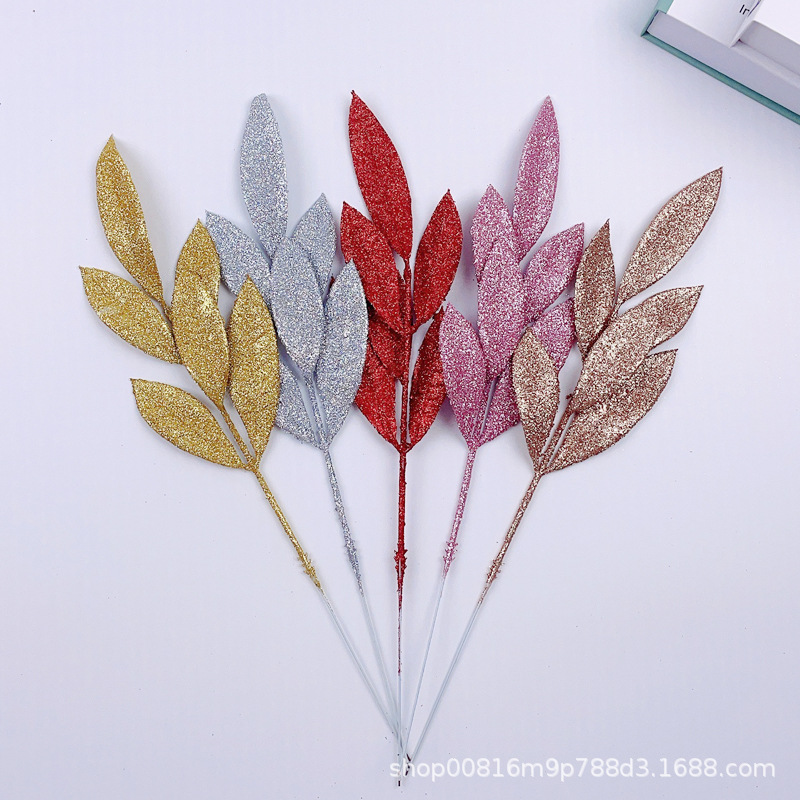 8CM * 34CMクリスマス金粉6枚の葉が国境を越えた電気商アマゾンはクリスマスツリーの花輪の結婚装飾を提供している