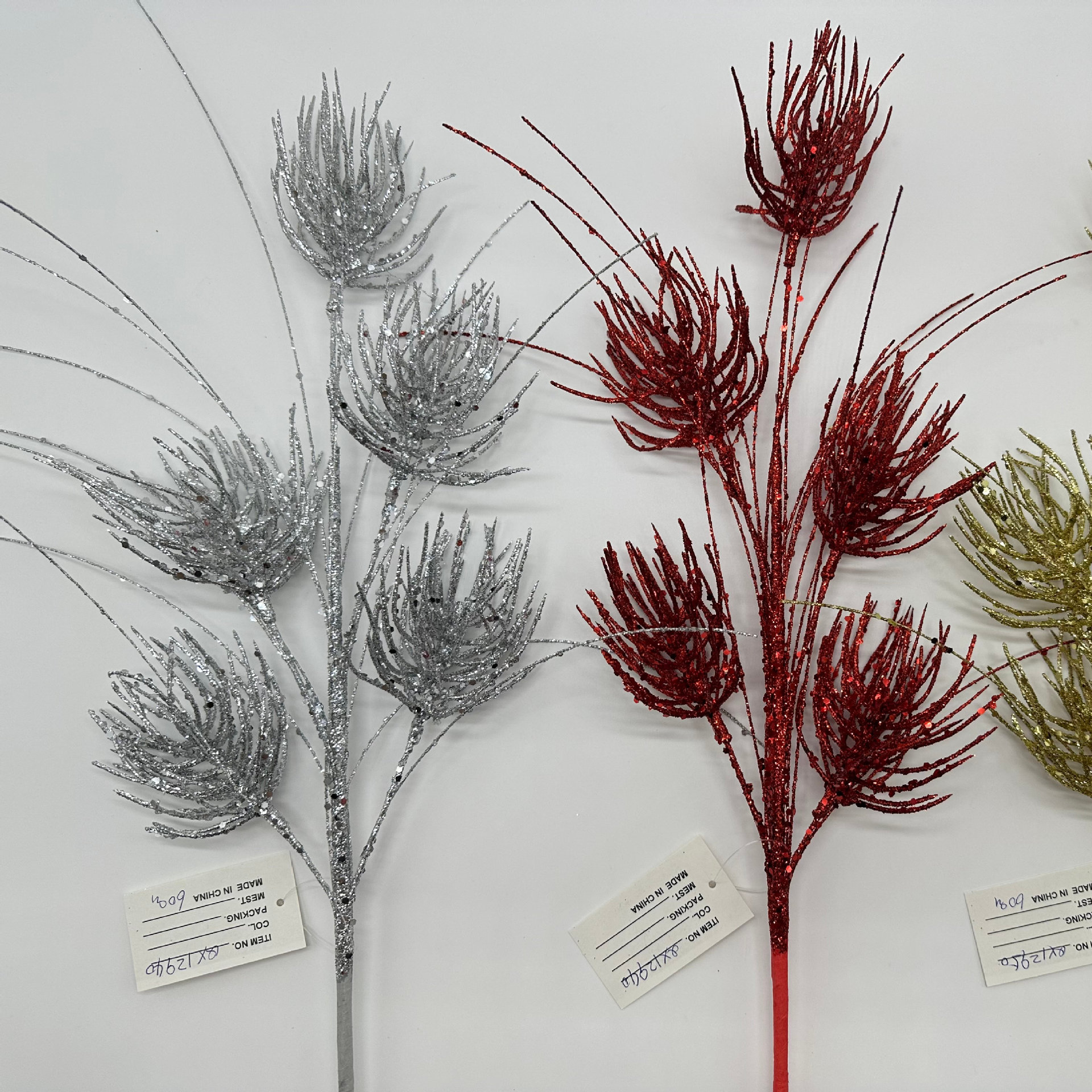 越境金葱粉装飾枝クリスマスツリープラグインクリスマス雰囲気用品偽枝シミュレーション植物犬尾草