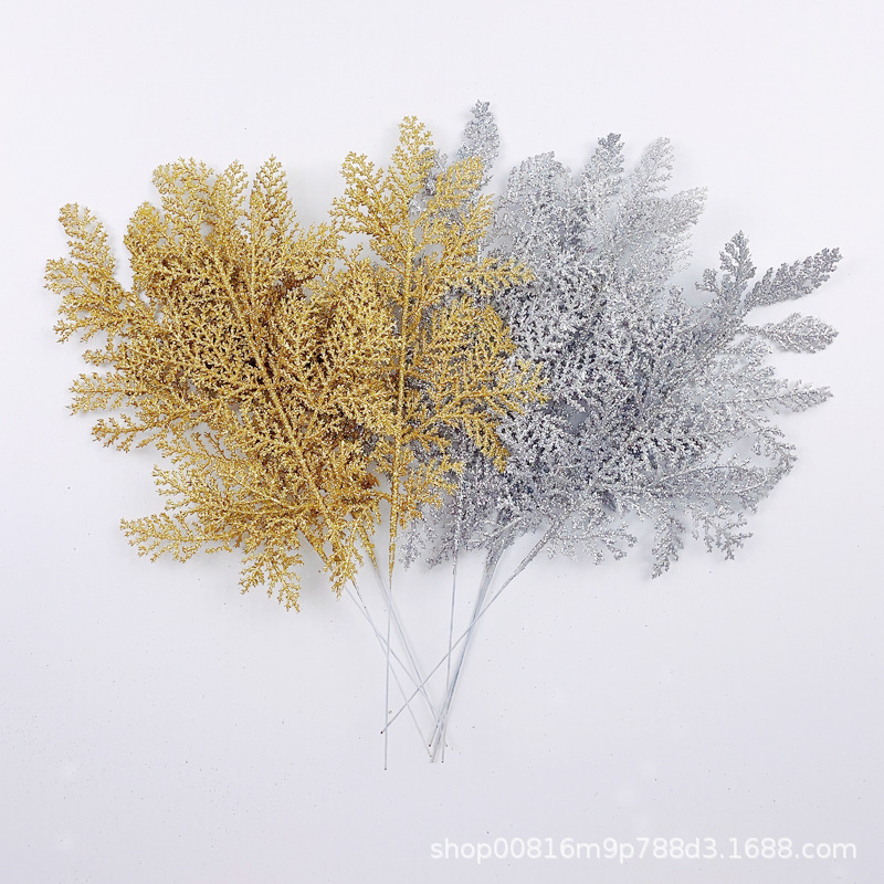 国境を越えたアマゾン金粉大柏葉15CM * 33CMクリスマス装飾部品人工シミュレーション緑植卸売り