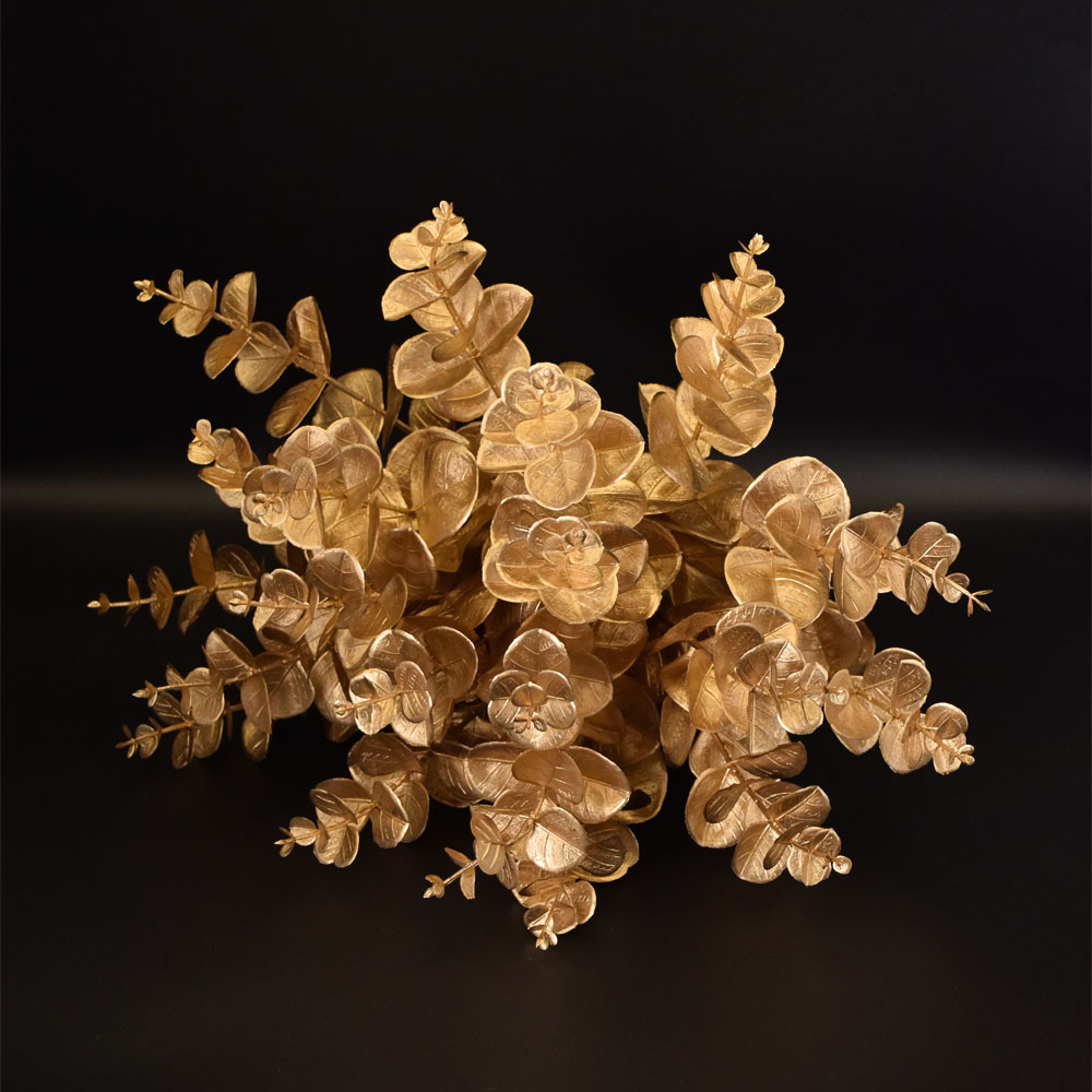 爆発金の尤加利年夜花小は尤加利結婚祝いの福桶の葉を生け花の金色の花にします。