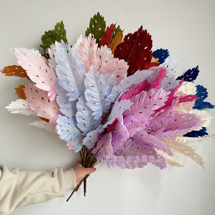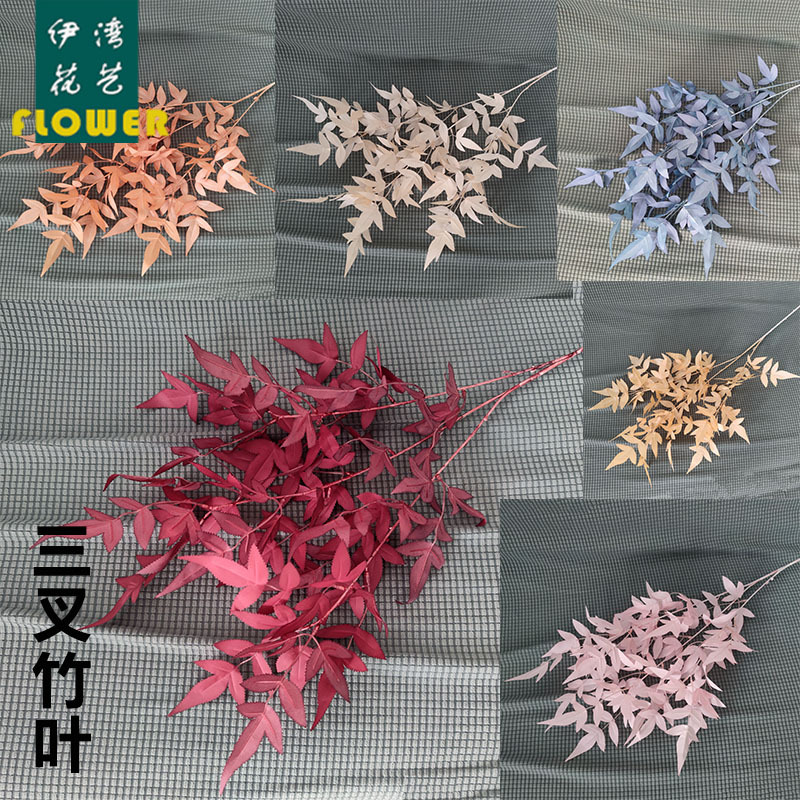 新しい3叉の竹の葉は楓の葉の結婚祝いのシミュレーションの葉の卸売りの結婚式場の吊り下げの装飾の偽の花の道具の葉の材料をシミュレーションします。