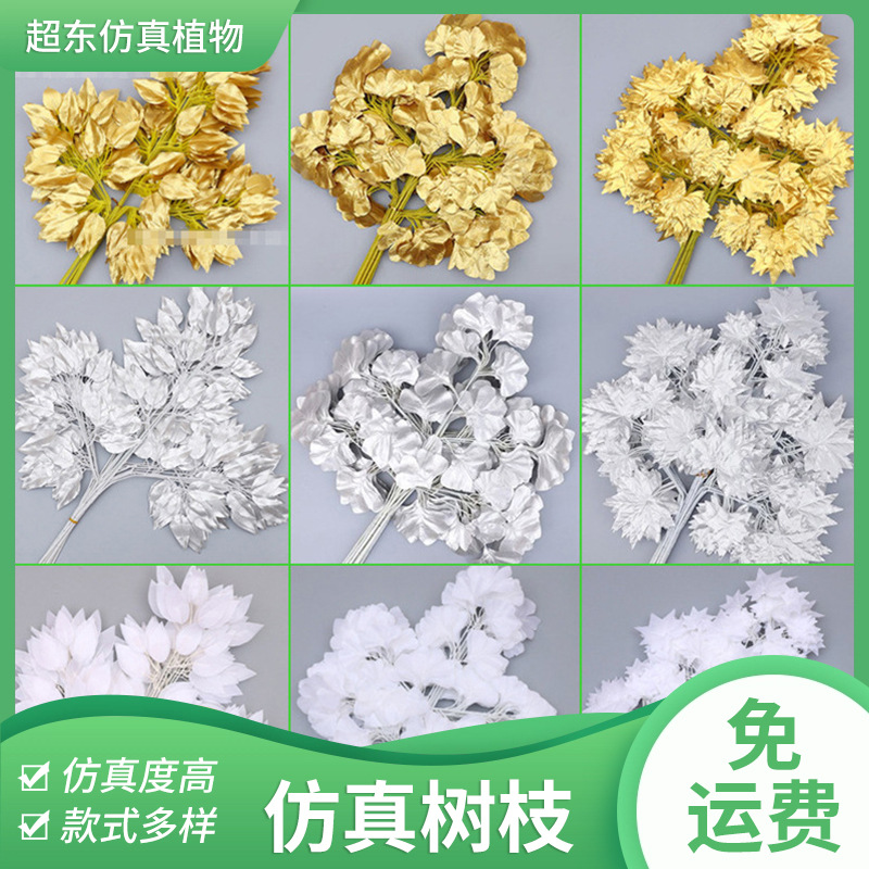 偽の枝、プラスチックの枝、造園工事、景観造形、模造の金色と銀色のフランネルヤシの葉、イチョウの葉、金の葉