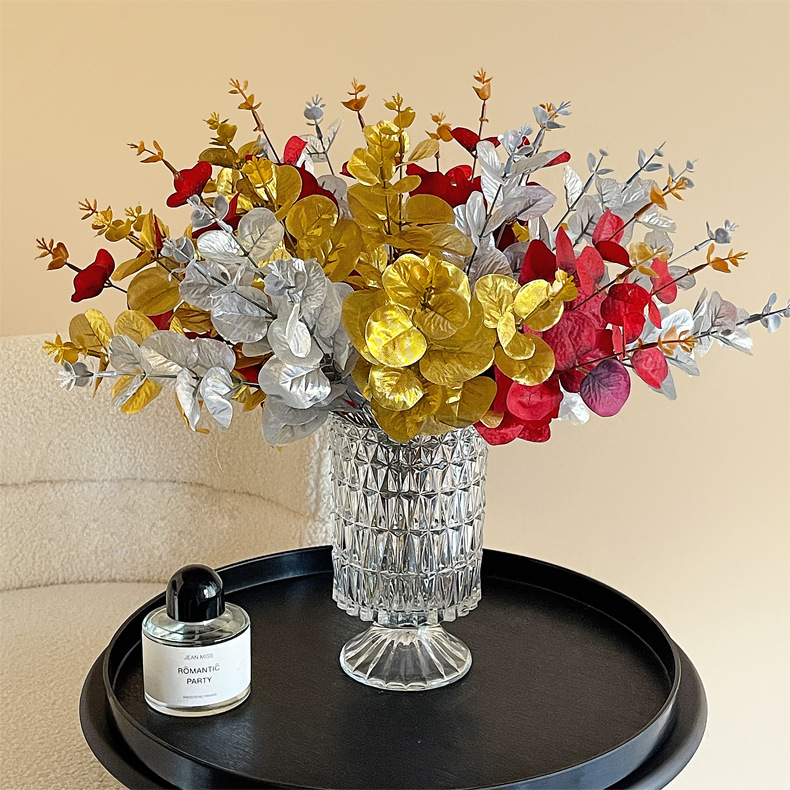 工場の商品の供給源2024の新型のシミュレーション尤加利の葉の桃の心の金の葉ユーカリの葉の花輪の藤の葉は配合します。