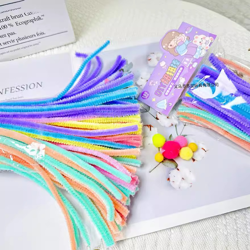 100本のマカロンツイスト棒の花束の毛の根っこのdiy材料の子供の益智のおもちゃの手作りの超密毛