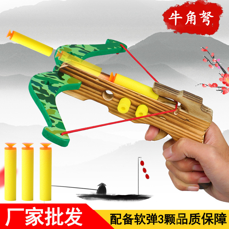 無害スポンジソフト弾丸吸盤おもちゃ弓ホーンクロスボウカラー印刷木製弓と矢子供の屋外撮影