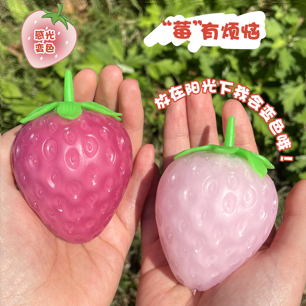 ネオプレンのおもちゃtprは光の変色に出会ってイチゴをつまんで楽をします。