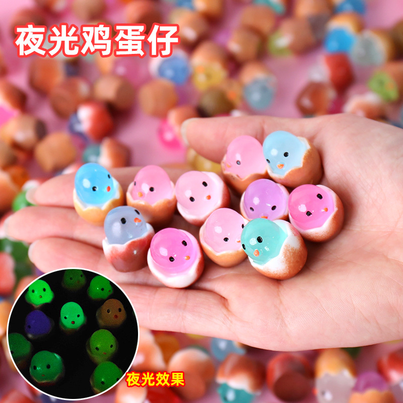 かわいい夜光の卵の子供の殻を破ったひよこdiy樹脂アクセサリーの子供のおもちゃの置物の卸売り
