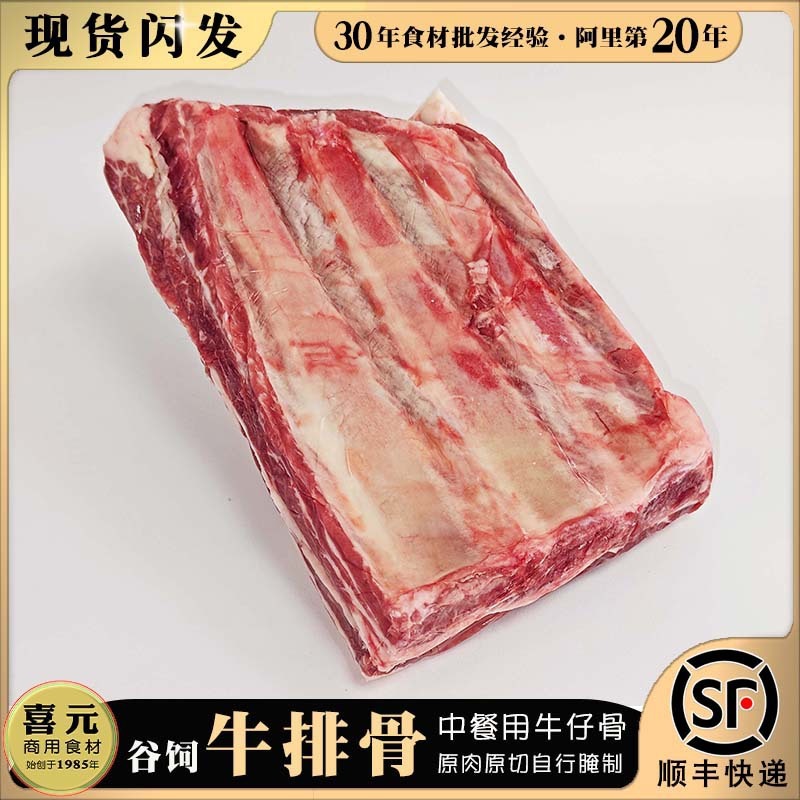 穀物飼育牛の骨付きリブ、牛骨3本、黒胡椒入り中華牛カルビ、非輸入ハラール肥育牛
