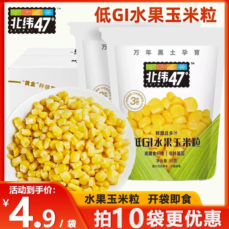 緯47度の低GI果物のトウモロコシの粒は袋を入れてすぐに新鮮な東北の甘いトウモロコシの粒を食べて朝食を代行します。