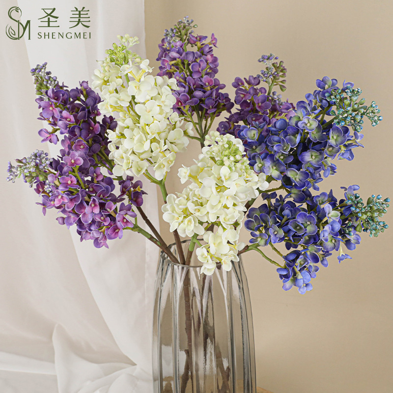 シミュレーション2フォークの紫丁の家庭の食卓の装飾の花芸のフランスの紫の青い花の材料の結婚祝いの偽の花芸