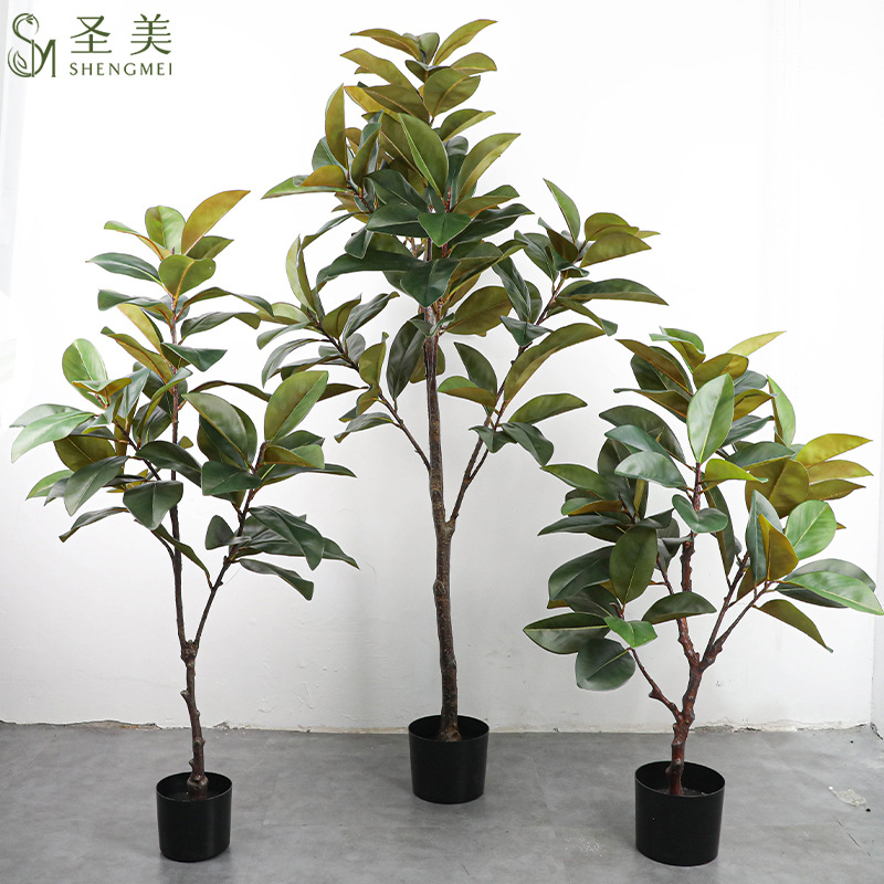 人工玉蘭、ゴムの木、トウイング、リビングルームの床置き鉢植え、衣料品店のショーウィンドウ、緑の人工植物、フィカス・リーファルス