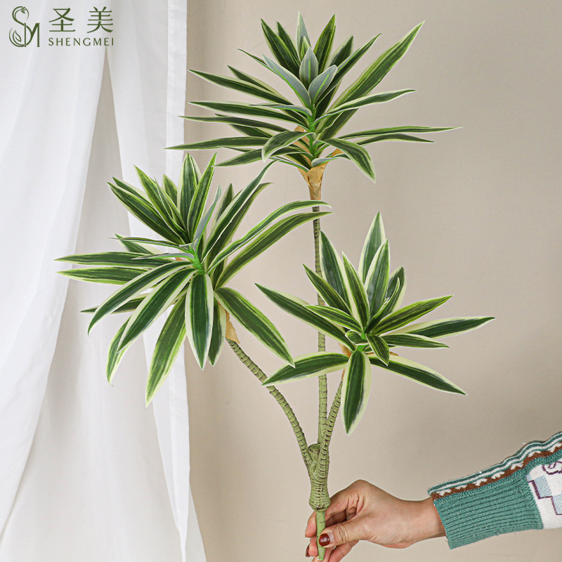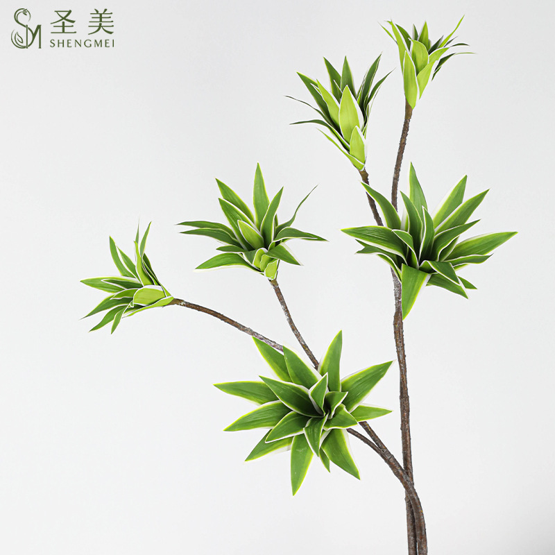 シミュレーション3フォークの短いユリの竹はテープの竹の葉の緑の植物の客間の装飾のブラジルの木の葉の偽の緑の植物を過ぎます。