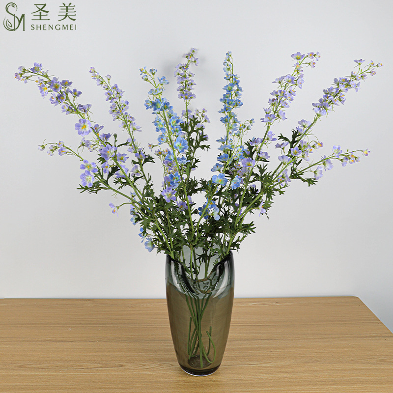 シミュレーション3頭のゴムの布の小さいスズメの子の花の結婚祝いの家の装飾の生け花の飛燕草のシーンは撮影の道具を配置します。
