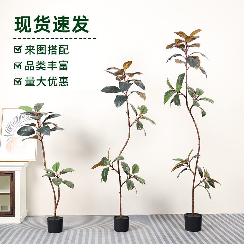 擬似緑植人工偽樹造花ゴム樹擬似花室内飾り庭園装飾花卉植物鉢植え