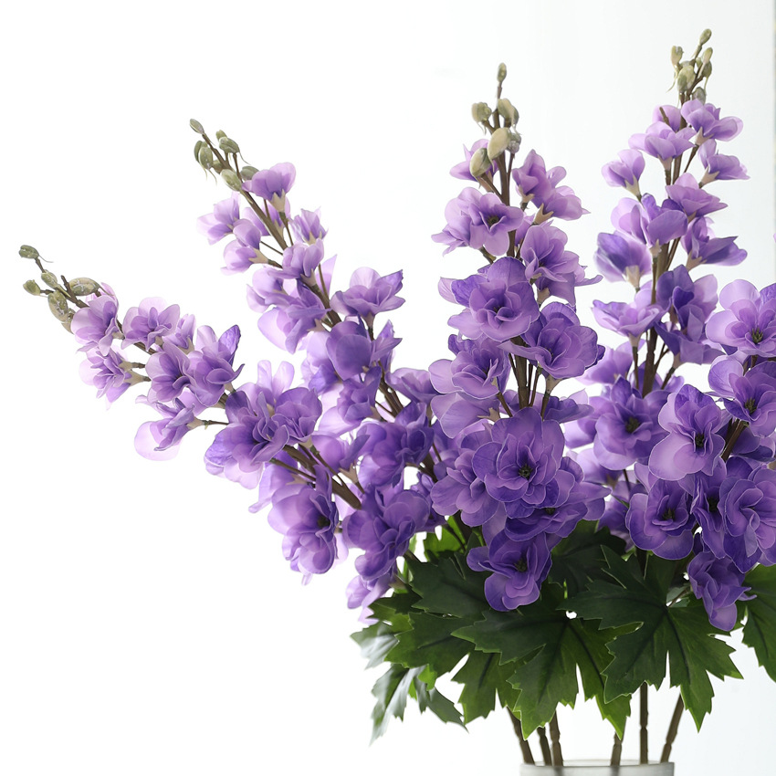 単一の紫の模擬テープ、ダルメシアン、ハトの花、長い枝、結婚式のフラワーアレンジメント、結婚式のホールの装飾、造花