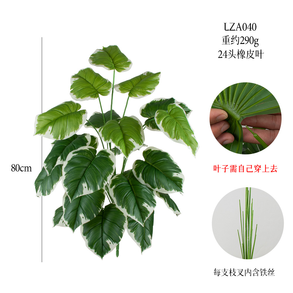 24頭のゴムの葉の花束のクロスボーダーのシミュレーションの木の柔らかい服の生け花の植物の中型の偽の緑の葉の花の芸の柔らかい服