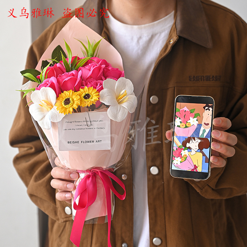 シミュレーション2号花棒バラ葉シルクネット花緑テープ手作りdiyしわ紙花芸製作材料バッグ