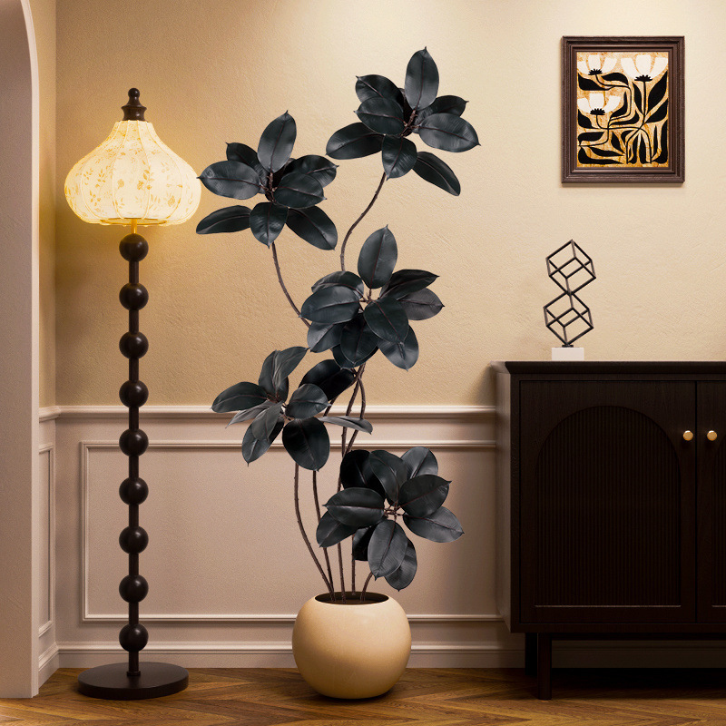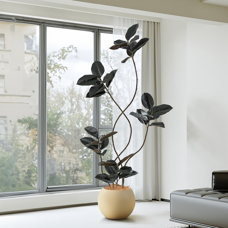 大型客間床置き置物室内ソファーテレビキャビネット横の偽植物黒金剛ゴム樹シミュレーション緑植