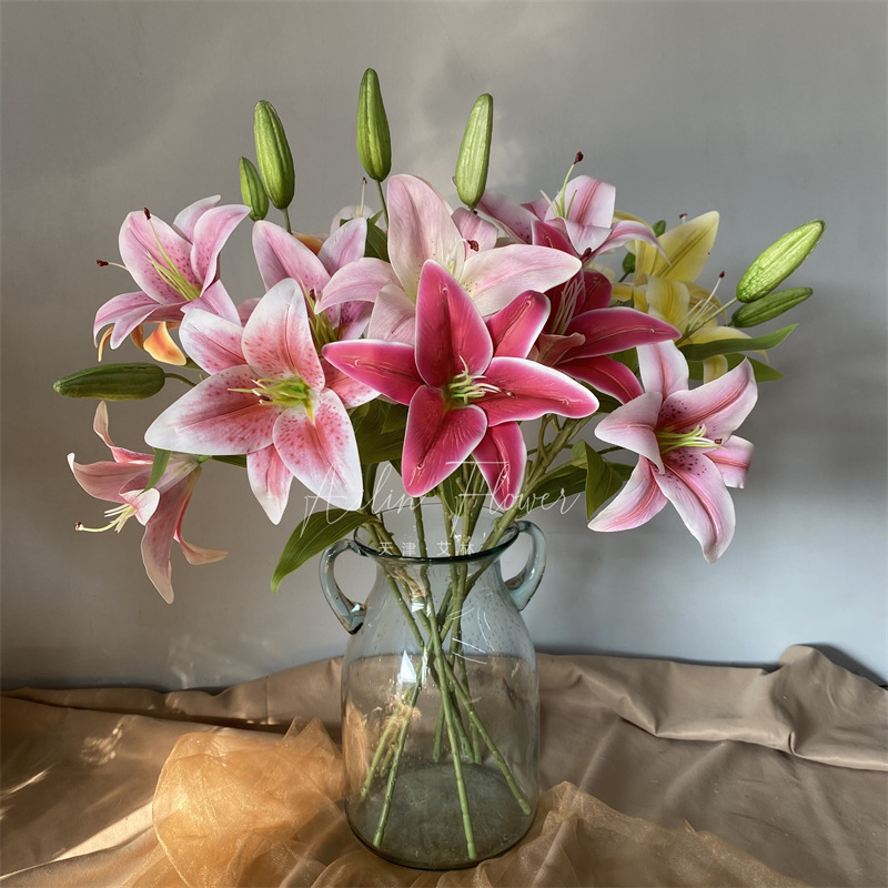 シミュレーション3頭の陽光百合3dゴム百合ウェディングホテルの家庭装飾造花シミュレーション花メーカー卸売り