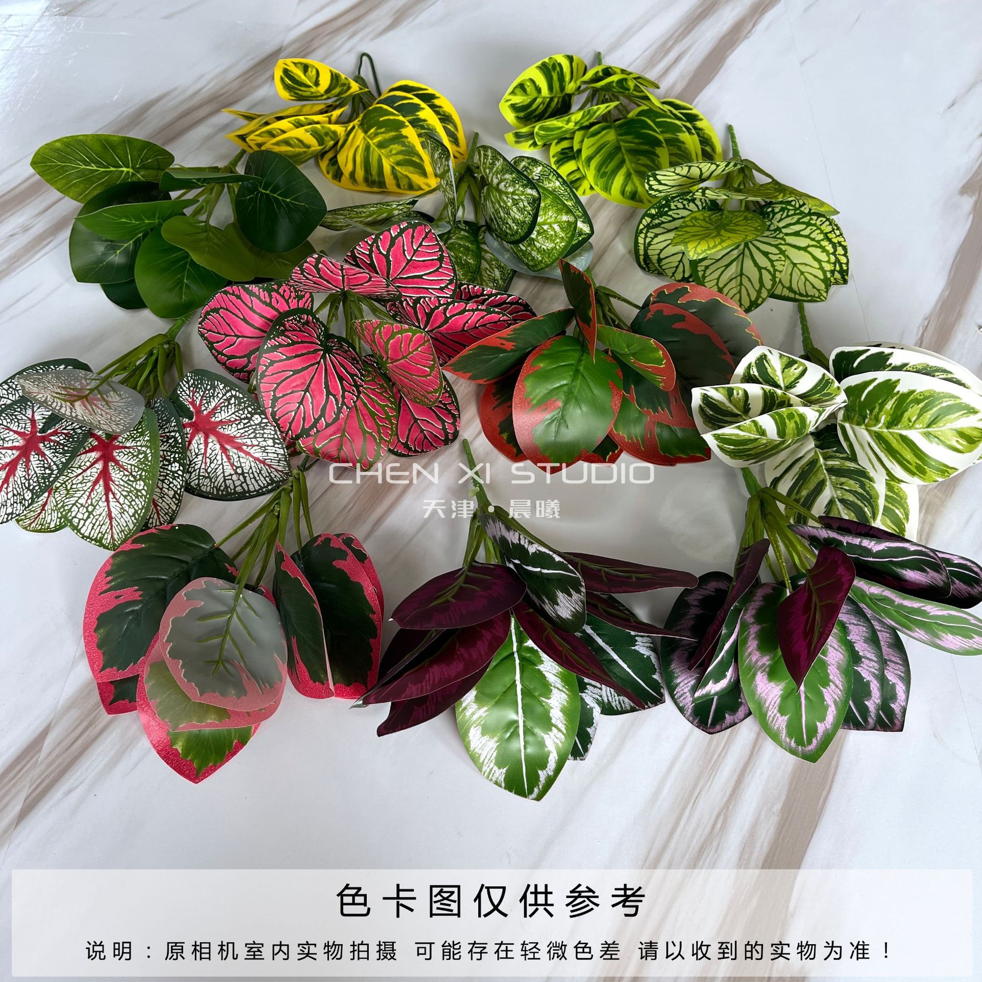 スポットシミュレーション緑植9頭ゴム葉縞葉過ゴム手触り植物壁配材偽葉屋外生け花