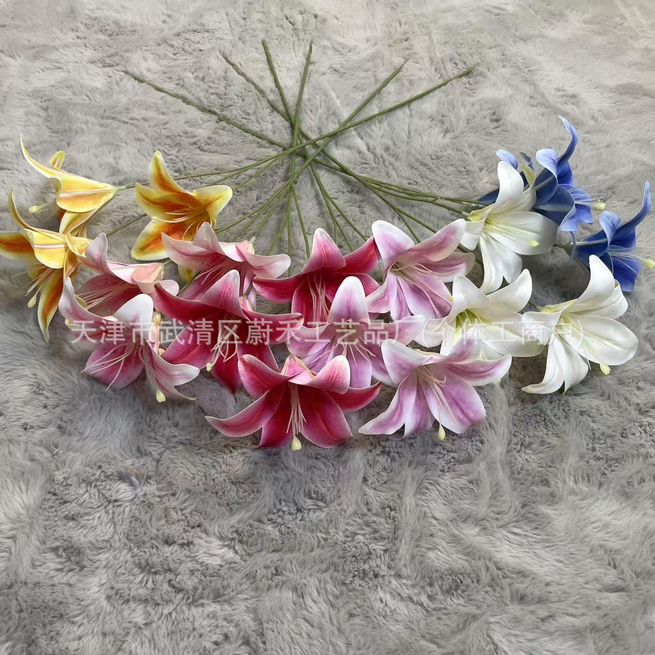 3頭のゴム布百合のシミュレーション花PU百合の手触りは保湿します。