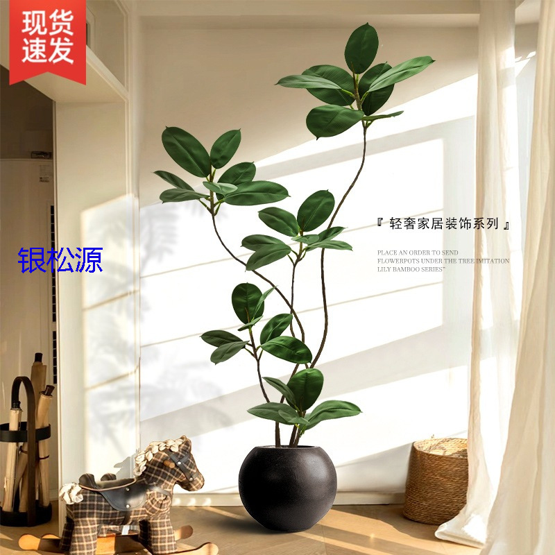 Linyabaya ゴールデン ゴムの木 インターネット セレブ 屋内 床置き装飾品 リビングルーム 北欧 イン モダン 鉢植え ソフトデコレーション シルクフラワー