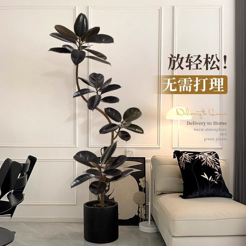 ブラックダイヤモンドゴムツリー模擬緑植物ハイエンドライト高級リビングルーム装飾品大型床置きわび寂しさスタイルバイオニック偽植物