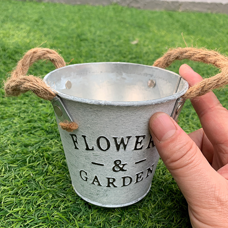 小さな新鮮な手作りフラワーバケツフラワーアレンジメント撮影小道具牧歌的な鉄の小さなバケツ防水ペンホルダーレトロな鉄のバケツ