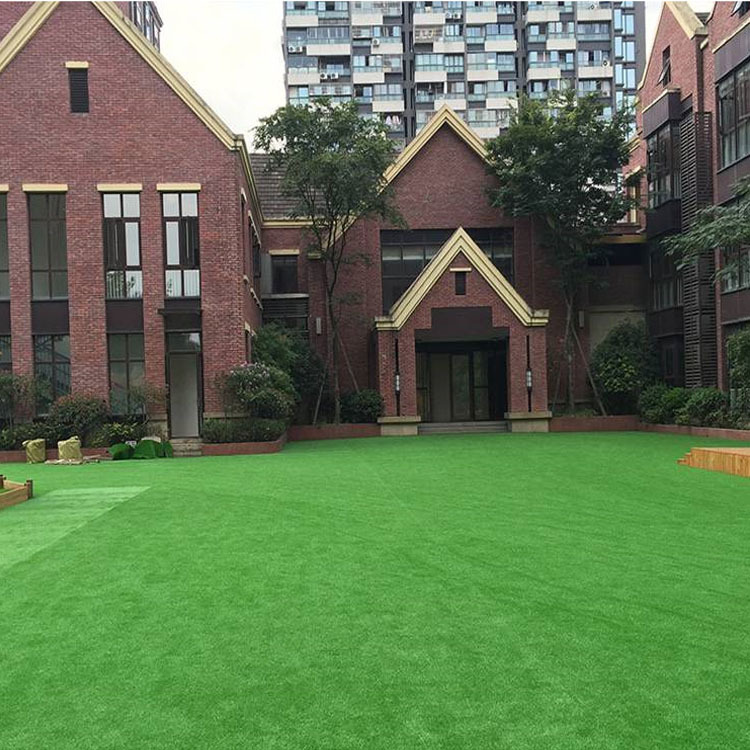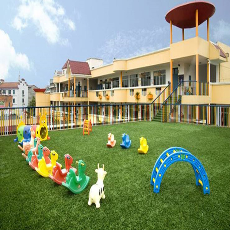 人工芝生屋外プラスチック偽草皮幼稚園のグリーン工事が屋根の人工絨毯草を囲います。