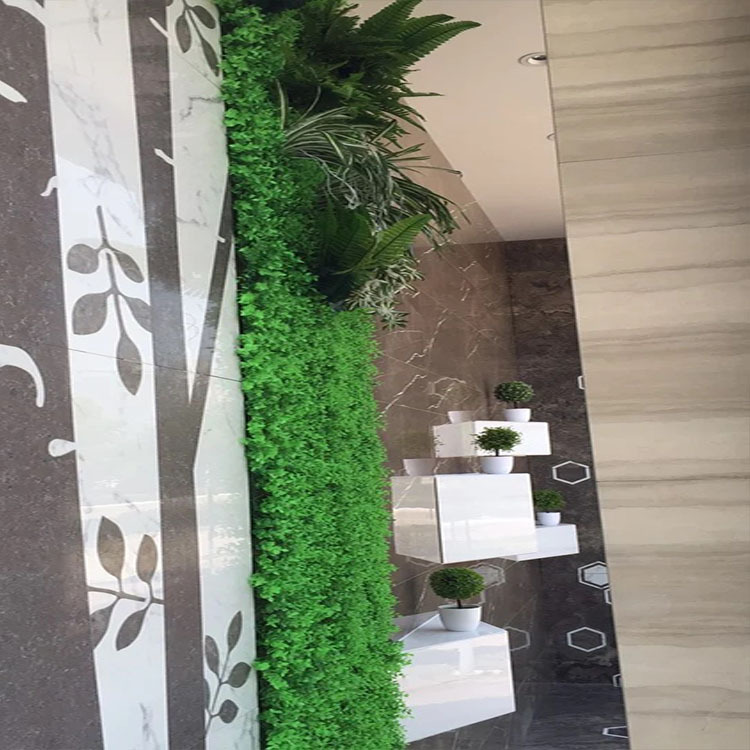 植物の壁のオフィスビルのレストランの小さい面積の隙間をシミュレーションして緑化の偽の芝生のプラスチックの緑を飾って背景の壁面を植えます。