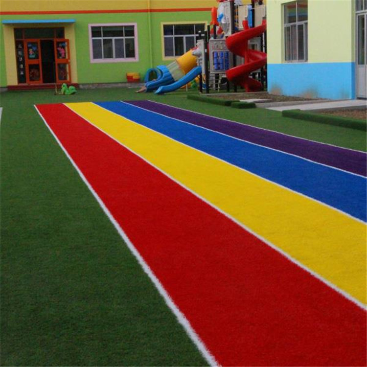 幼稚園の屋外人工芝生虹滑走路カラー赤黄青紫プラスチックじゅうたん果嶺草皮