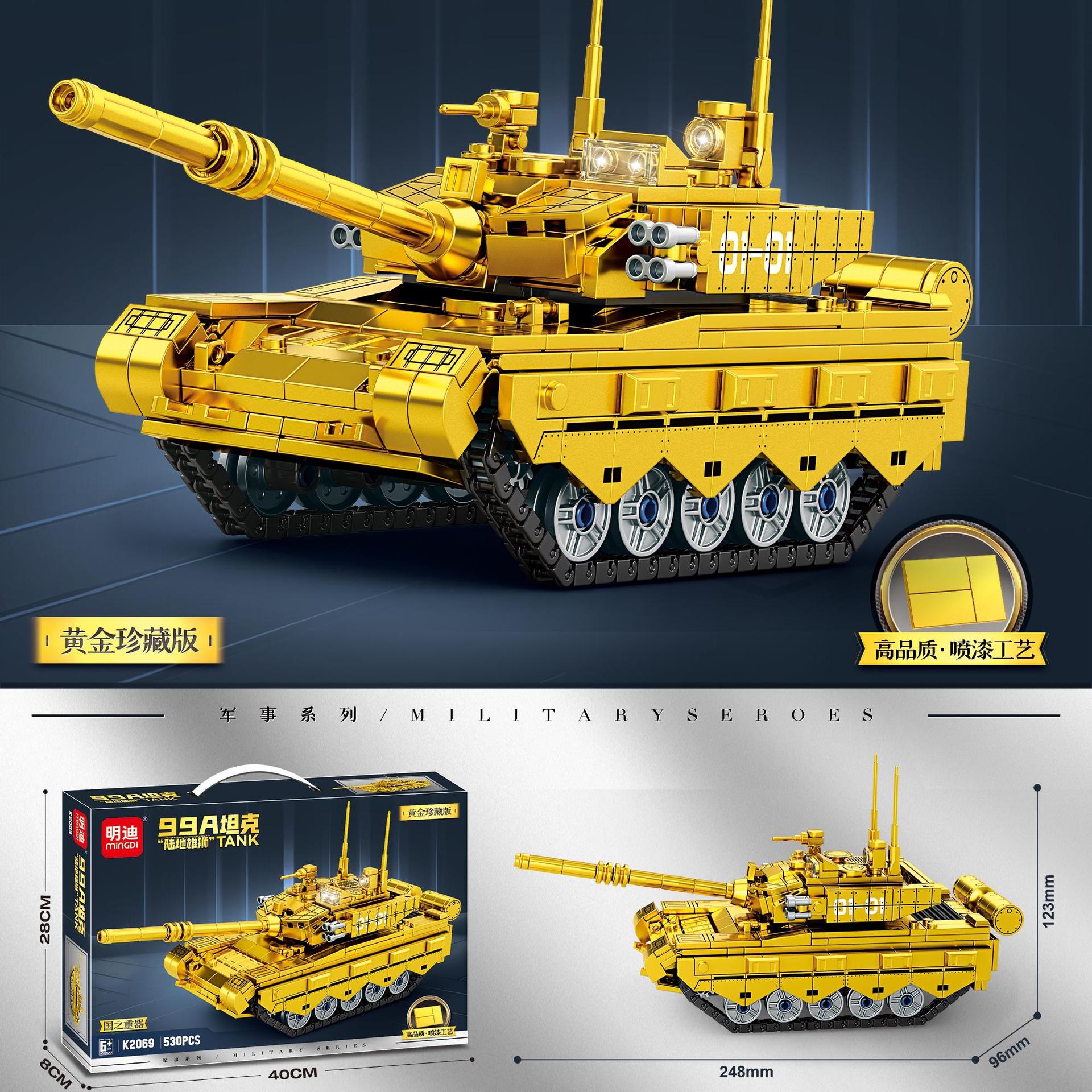 ゴールドバージョンの戦車組み立てビルディングブロック軍事空母子供用パズルおもちゃコレクション装飾モデル