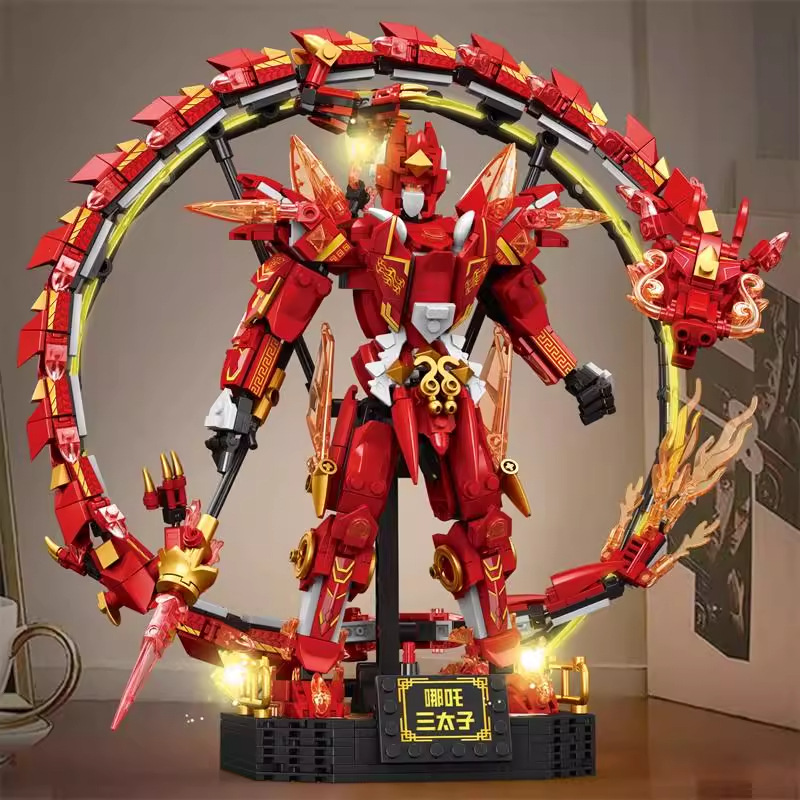 中国風ライオンダンス少年ロボットメカ組み立てビルディングブロック子供男の子シリーズおもちゃ装飾品ギフト