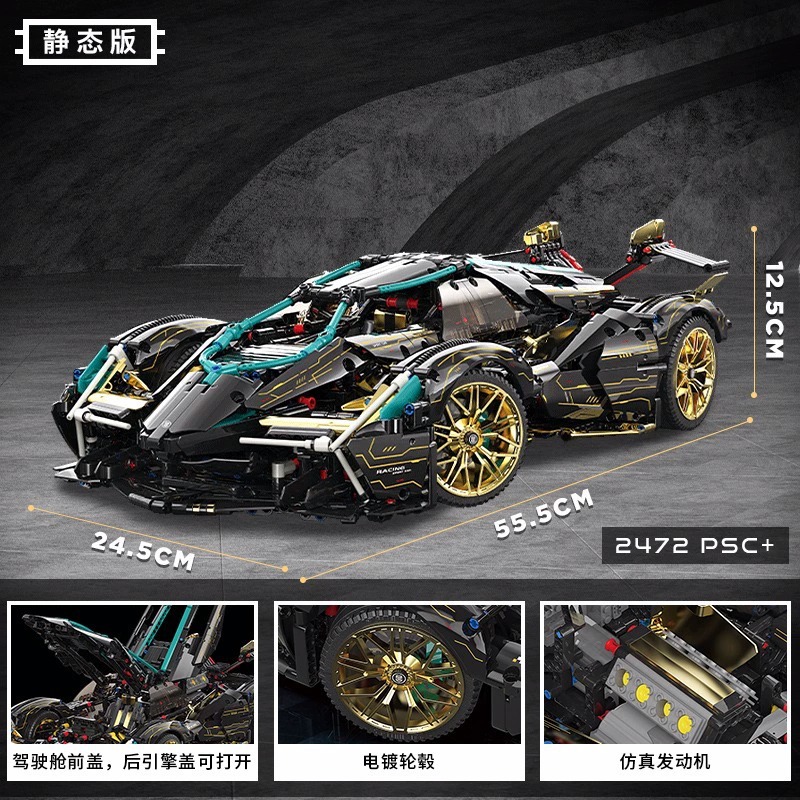 レゴテクニカルメカニカルセット リンバジアン ブラックゴールド V12 コンセプト スーパーカー組み立てブロックおもちゃと互換性があります。