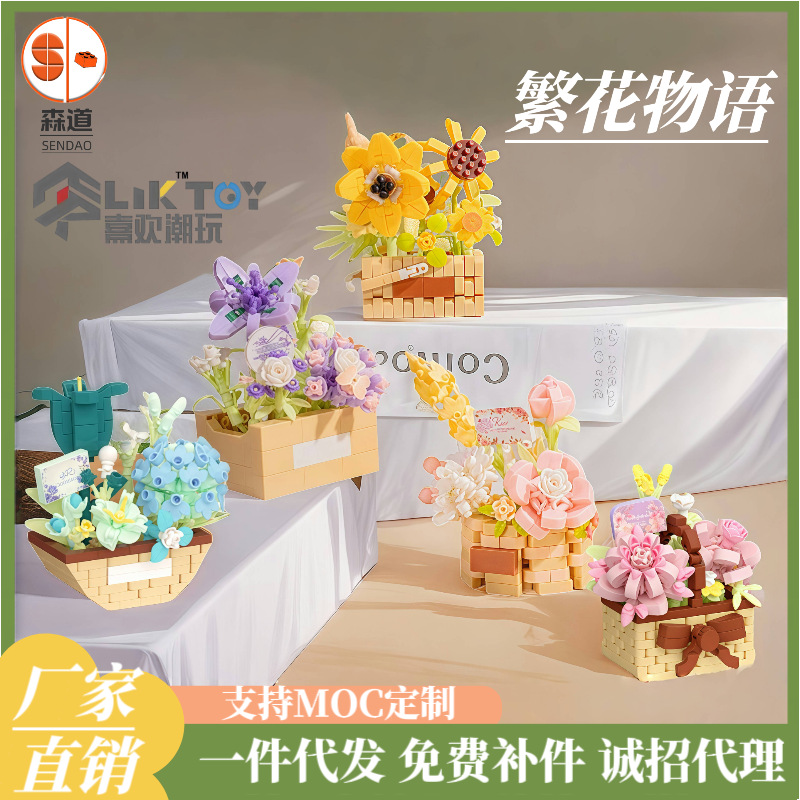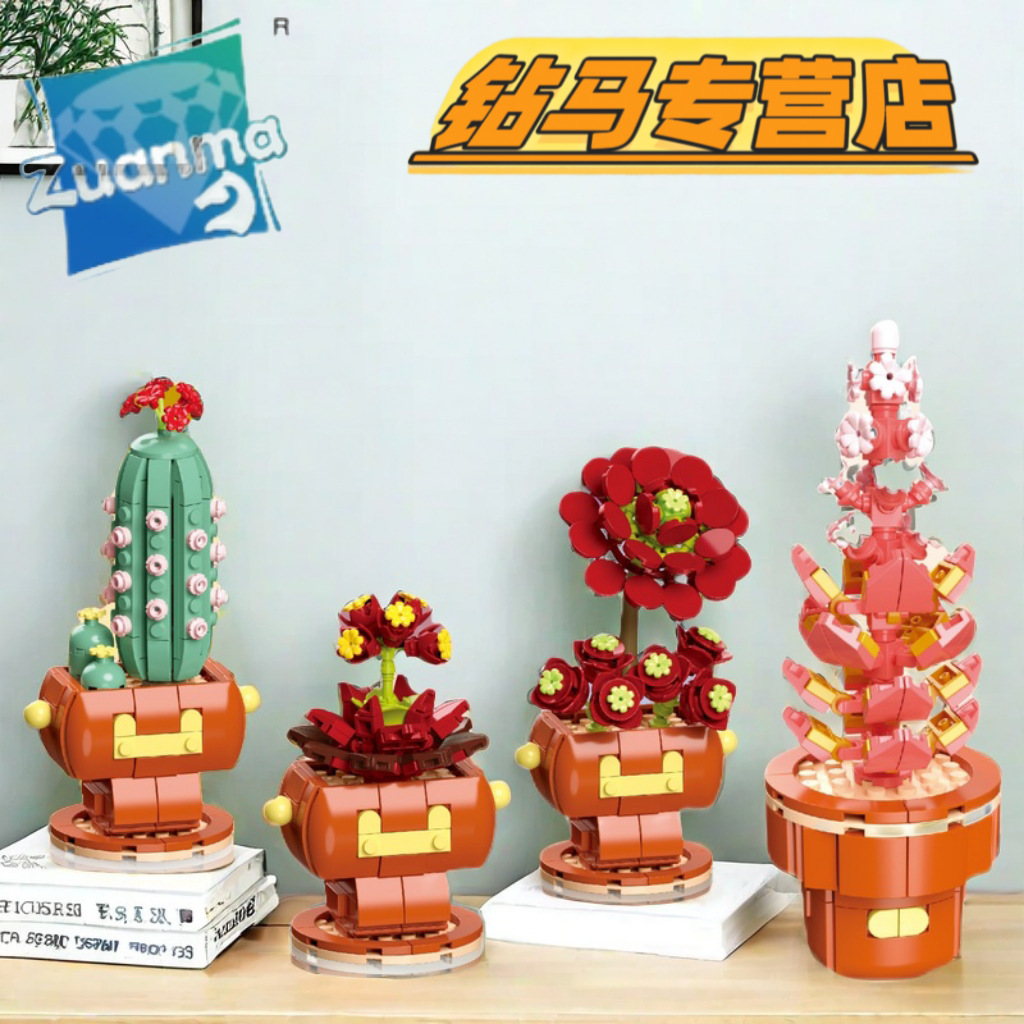 クロスボーダービルディングブロックフラワービルディングブロック不滅の花多肉植物鉢植え小粒子DIY組み立てブーケビルディングブロックフラワートイズオーナメント