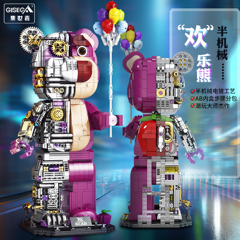 積み木の半分の機械の熊は積み木をつづり合わせます。