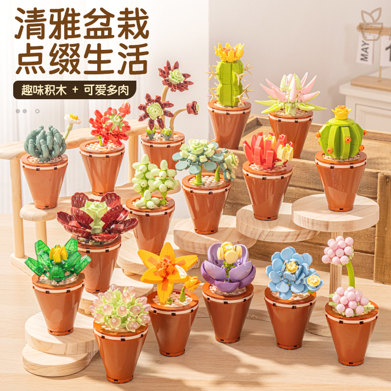 趣味積み木ミニかわいい多肉植物シミュレーション鉢植え積み木室内置物子供玩具プレゼント卸売り