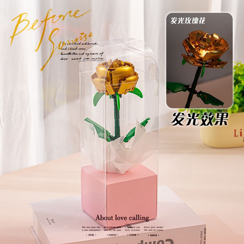 DIY 発光ローズビルディングブロック花束組み立て永遠の花リトルレッドブック同じスタイルの中国のバレンタインデーのギフトガールフレンドのおもちゃ