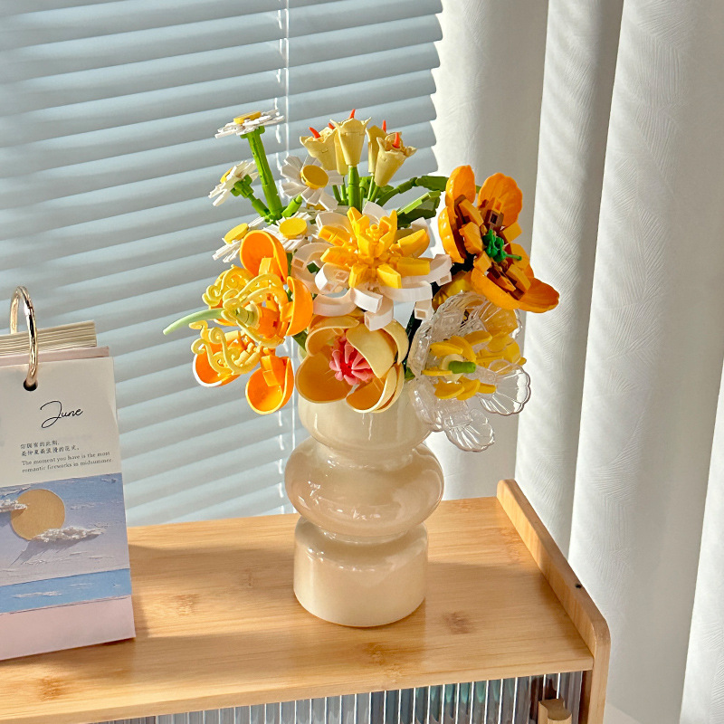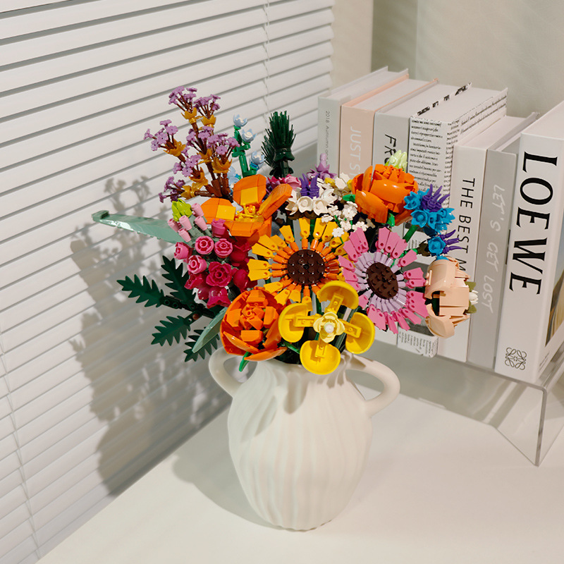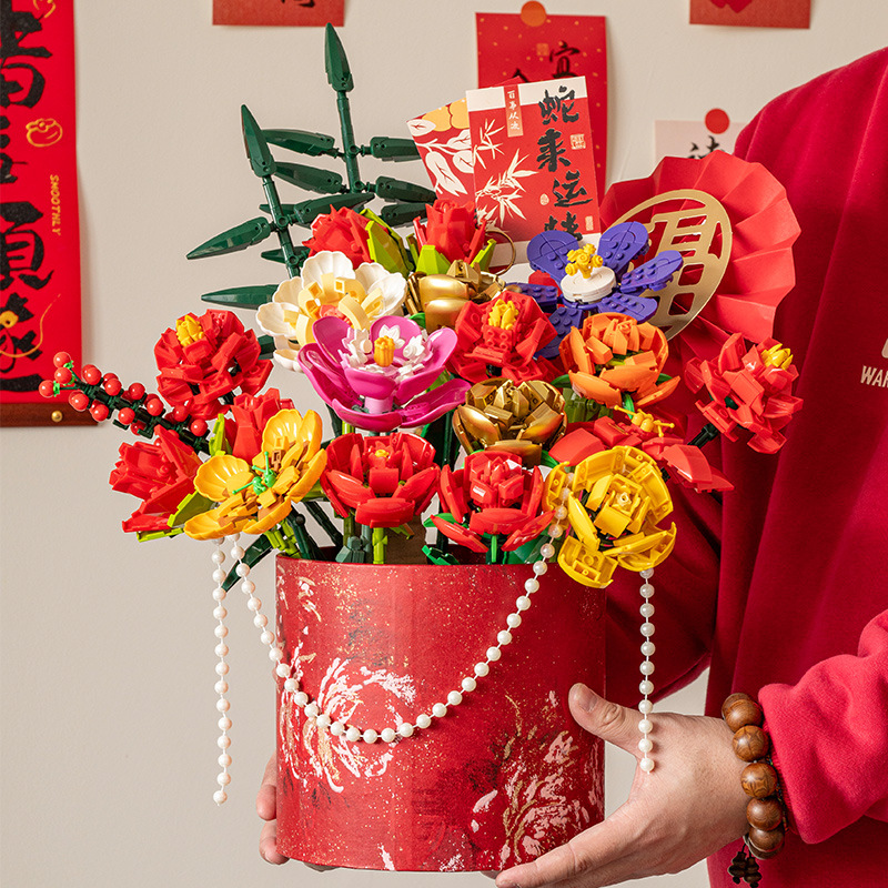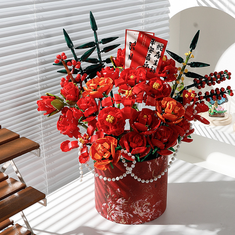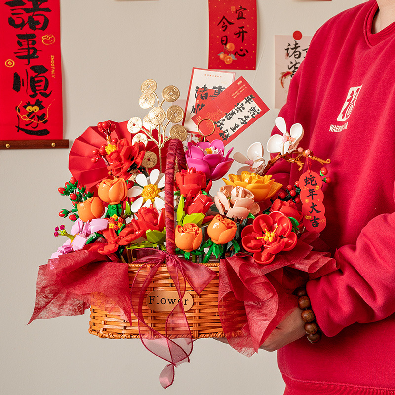 手作り diy 花バスケット花束新年ギフト家の装飾新築祝い大晦日花組み立てビルディングブロック花のおもちゃ