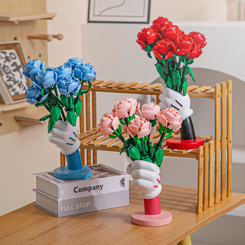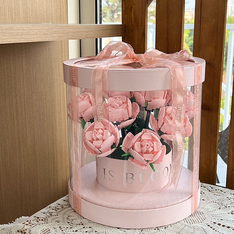 フラワーバケツクリエイティブローズブーケハグバケツdiy手作り素材パッケージ春祭り新年の装飾品組み立てビルディングブロックおもちゃ