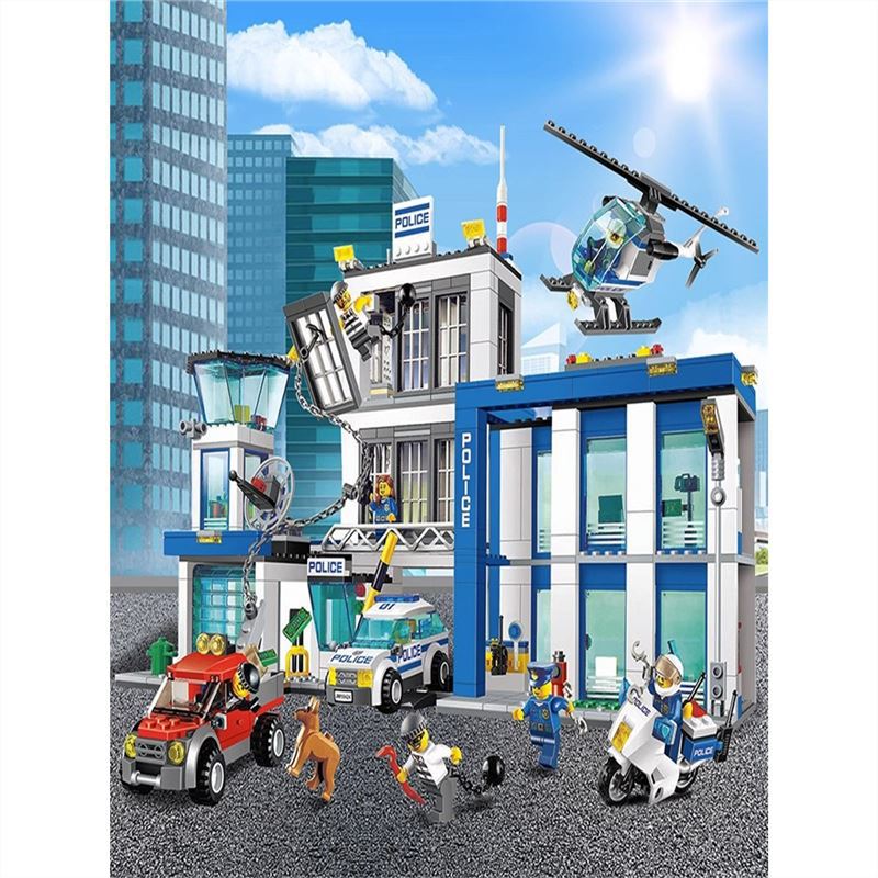 中国都市シリーズ警察署パトカーヘリコプター人の子供の積み木を組み合わせて、子供のおもちゃの男の子のプレゼントを作ります。