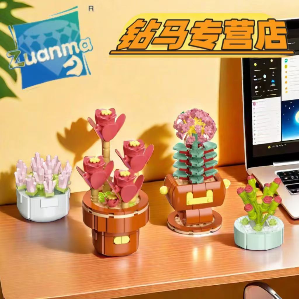 積み木フラワー鉢植えデスクトップ装飾品クリエイティブ装飾女の子の誕生日プレゼント知育玩具 61 子供の日のギフト