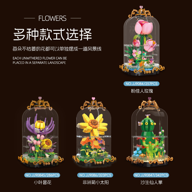 新品微粒永生花多肉盆栽バラブーケ植物盛り合わせ積み木玩具女の子生け花積み木