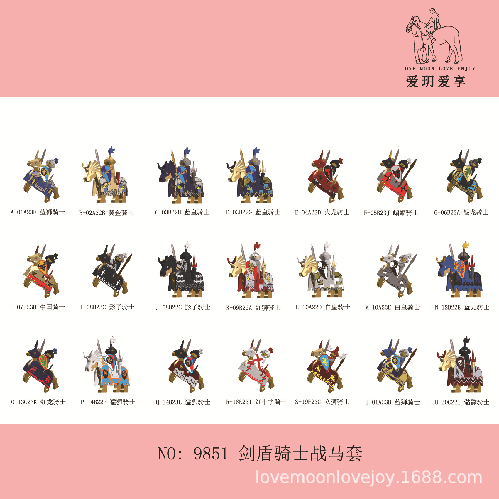 Lojoブランド愛 _ 愛享玩具小粒積み木小人仔騎士スカル軍団戦馬鞍