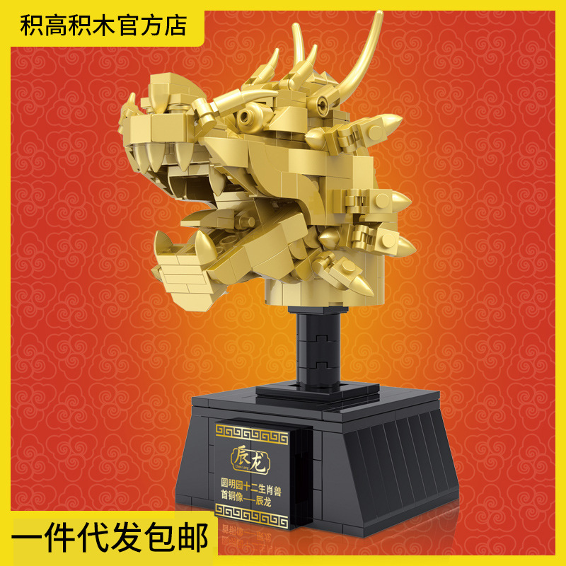 包郵便積高積み木国潮十二文化生肖文化財首銅小粒をつづり合わせて益智積み木玩具