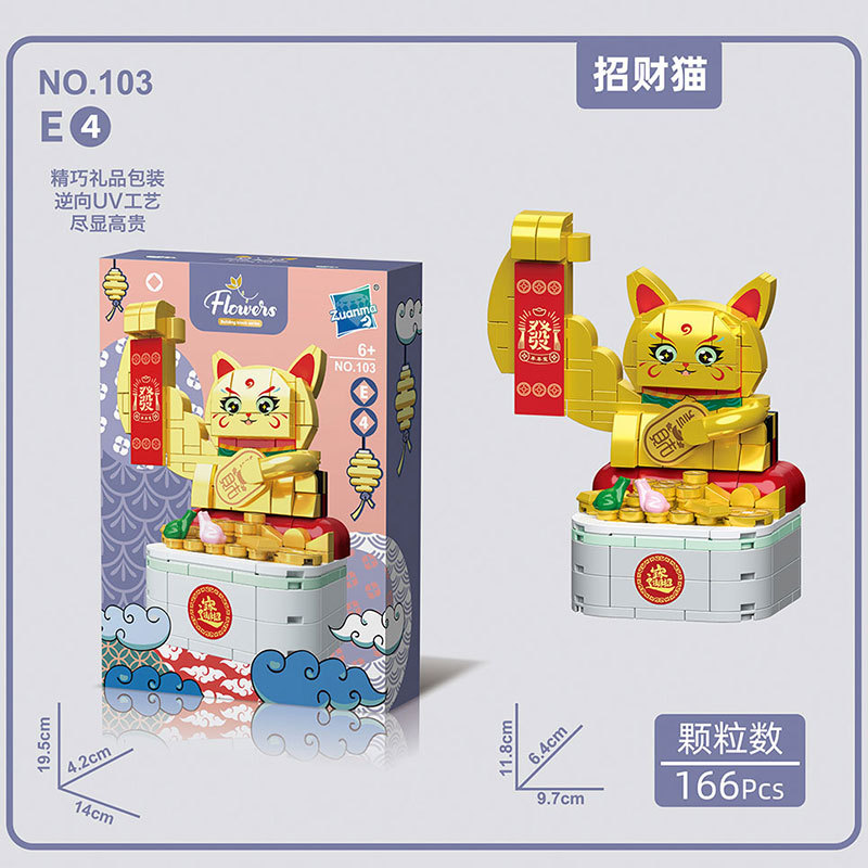 馬国潮招き猫の小粒の積み木の模型のおもちゃの子供の益智の組み合わせの事務室は贈り物を並べます。