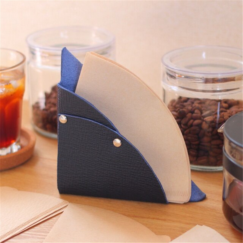 新しい革コーヒーフィルタークリエイティブ扇形コーヒーマシン部品コーヒーろ紙収納袋