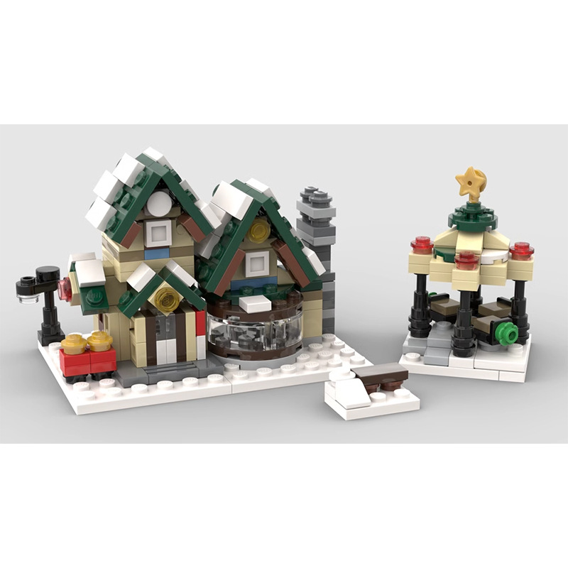 MOC-113261のミニシーン冬の村の郵便局はレゴの小さい粒子と一緒に積み木の模型のおもちゃを詰めます。